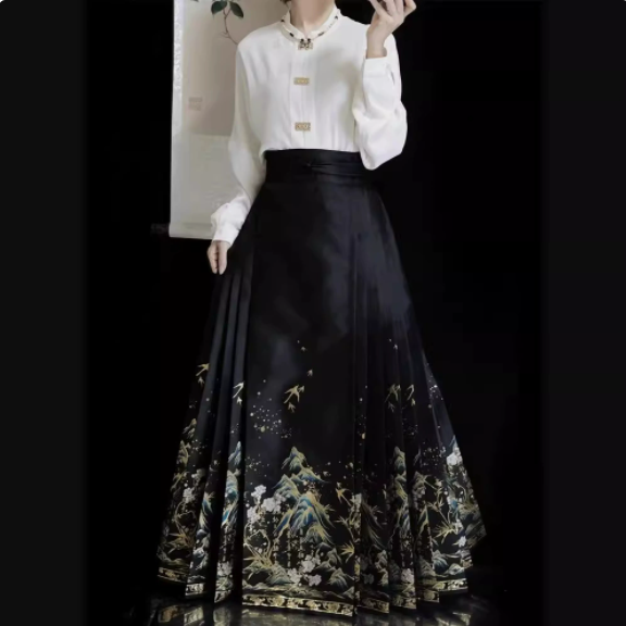 中式黑色马面裙上衣搭配套装四季小个子国风汉服女