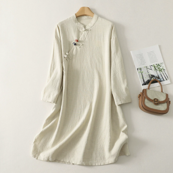 中式连衣裙国风佛系禅服居士服斜襟盘扣袍子复古旗袍裙