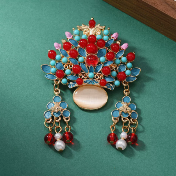 国潮凤冠花旦流苏胸针中式宫廷胸花旗袍汉服别针扣礼物